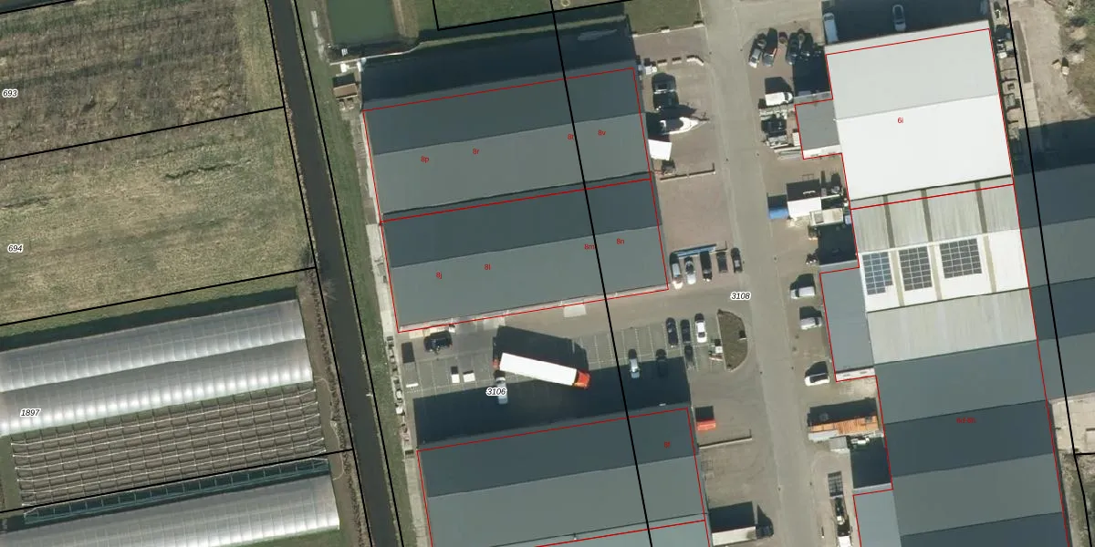 Het perceel waarop Nijverheidsstraat 8-m staat heeft een oppervlakte van 6119 m². Dit is een zeer groot perceel. De perceeloppervlakte wordt geregistreerd door het Kadaster. Gedetailleerde informatie over de maten van dit perceel kunt u vinden in het rapport Kadastrale kaart met maatvoering van Nijverheidsstraat 8-m.
