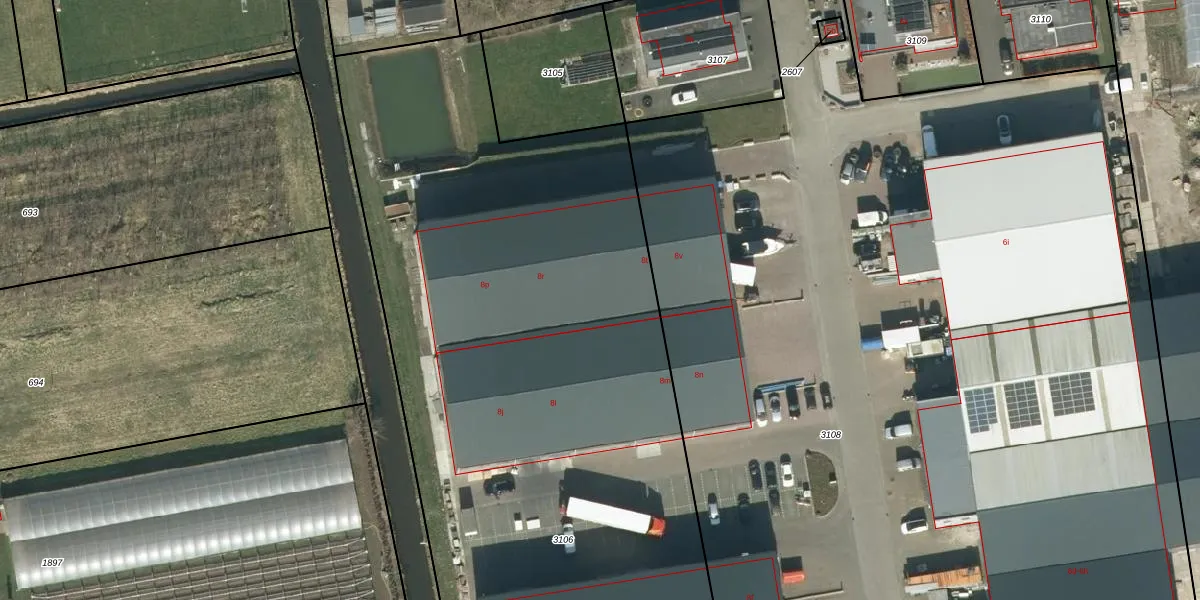 Het perceel waarop Nijverheidsstraat 8-t staat heeft een oppervlakte van 6119 m². Dit is een zeer groot perceel. De perceeloppervlakte wordt geregistreerd door het Kadaster. Gedetailleerde informatie over de maten van dit perceel kunt u vinden in het rapport Kadastrale kaart met maatvoering van Nijverheidsstraat 8-t.