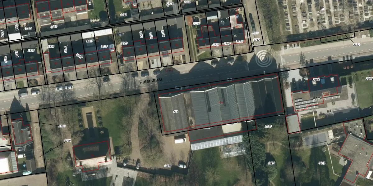 Het perceel waarop Paterstraat 7-g staat heeft een oppervlakte van 1595 m². Dit is een zeer groot perceel. De perceeloppervlakte wordt geregistreerd door het Kadaster. Gedetailleerde informatie over de maten van dit perceel kunt u vinden in het rapport Kadastrale kaart met maatvoering van Paterstraat 7-g.