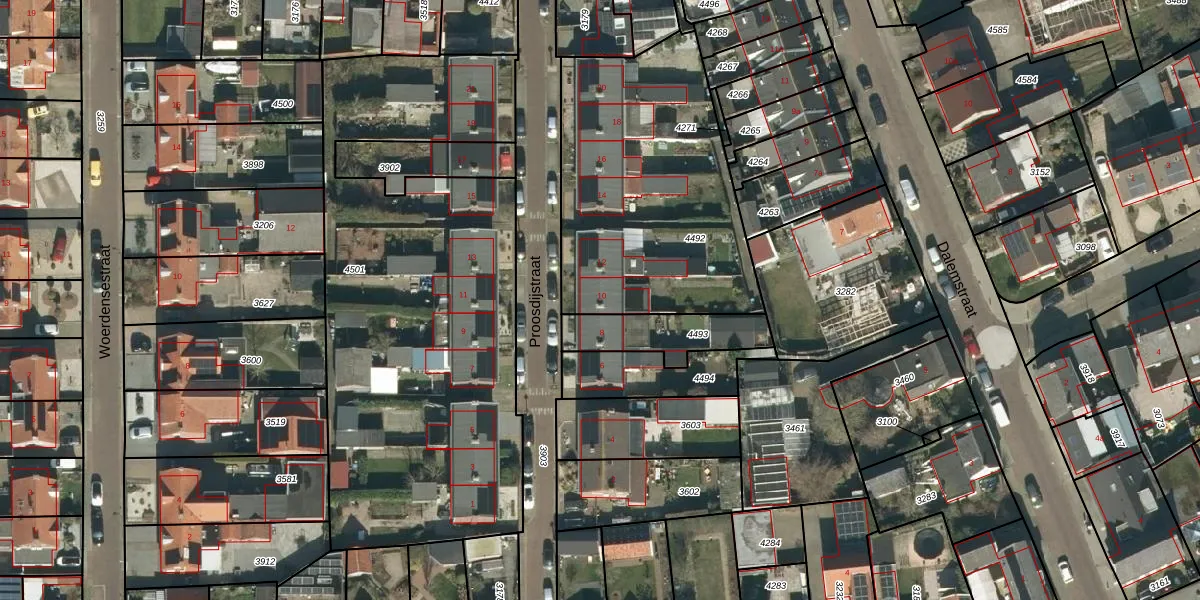 Proosdijstraat 10 is gelegen op kadastraal perceel MDL01K4492. Deze kadastrale aanduiding is uniek en wordt gebruikt door het Kadaster om eigendomsrechten en andere zakelijke rechten vast te leggen. Het perceel maakt onderdeel uit van de kadastrale gemeente Maasdriel.