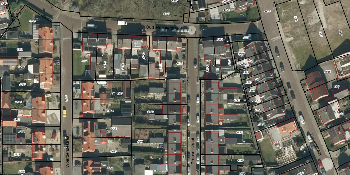 Proosdijstraat 21 is gelegen op kadastraal perceel MDL01K4501. Deze kadastrale aanduiding is uniek en wordt gebruikt door het Kadaster om eigendomsrechten en andere zakelijke rechten vast te leggen. Het perceel maakt onderdeel uit van de kadastrale gemeente Maasdriel.