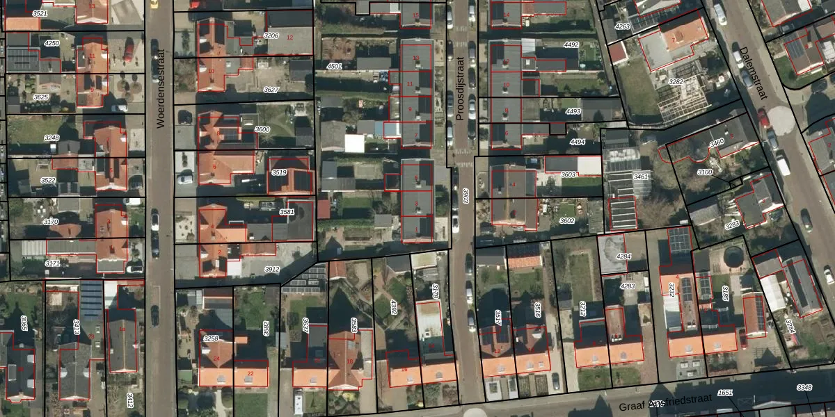Proosdijstraat 3 is gelegen op kadastraal perceel MDL01K4501. Deze kadastrale aanduiding is uniek en wordt gebruikt door het Kadaster om eigendomsrechten en andere zakelijke rechten vast te leggen. Het perceel maakt onderdeel uit van de kadastrale gemeente Maasdriel.