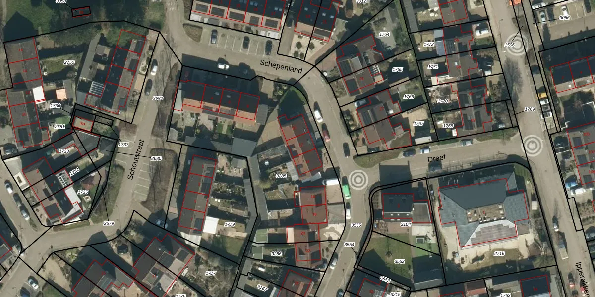 Het perceel waarop Schepenland 12 staat heeft een oppervlakte van 2067 m². Dit is een zeer groot perceel. De perceeloppervlakte wordt geregistreerd door het Kadaster. Gedetailleerde informatie over de maten van dit perceel kunt u vinden in het rapport Kadastrale kaart met maatvoering van Schepenland 12.