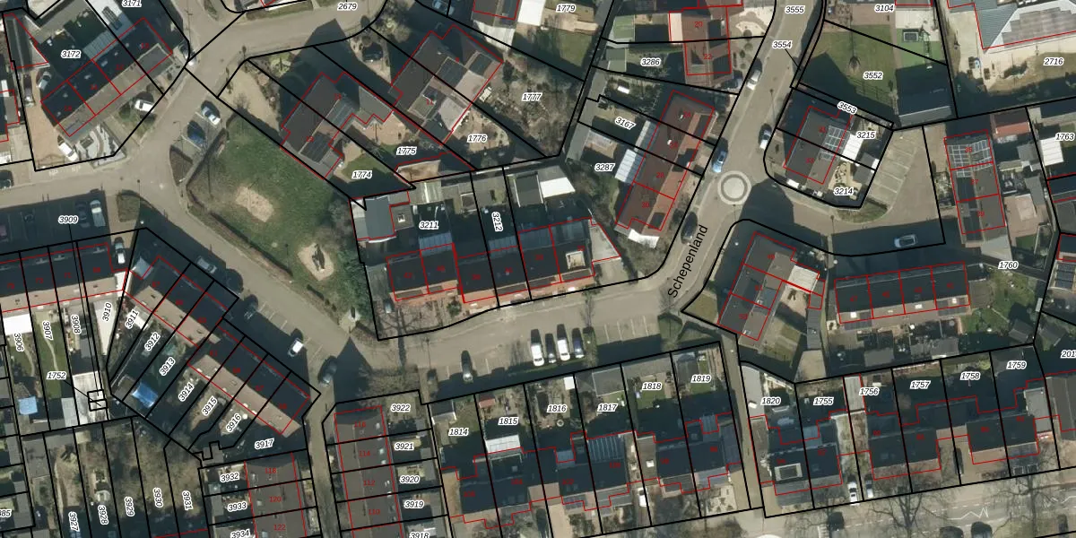 Schepenland 34 is gelegen op kadastraal perceel MDL01N3287. Deze kadastrale aanduiding is uniek en wordt gebruikt door het Kadaster om eigendomsrechten en andere zakelijke rechten vast te leggen. Het perceel maakt onderdeel uit van de kadastrale gemeente Maasdriel.