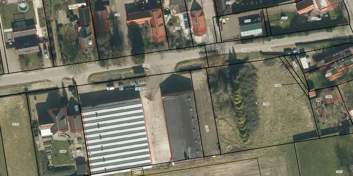 Het perceel waarop Veersteeg 7-f staat heeft een oppervlakte van 3290 m². Dit is een zeer groot perceel. De perceeloppervlakte wordt geregistreerd door het Kadaster. Gedetailleerde informatie over de maten van dit perceel kunt u vinden in het rapport Kadastrale kaart met maatvoering van Veersteeg 7-f.