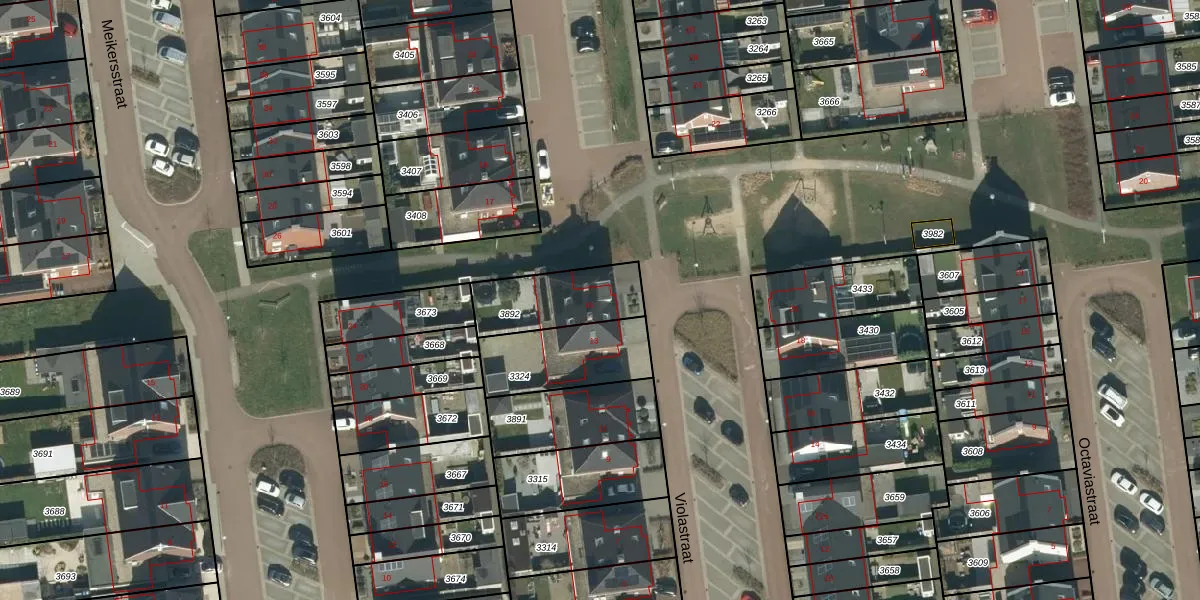 Violastraat 15 is gelegen op kadastraal perceel MDL01N3892. Deze kadastrale aanduiding is uniek en wordt gebruikt door het Kadaster om eigendomsrechten en andere zakelijke rechten vast te leggen. Het perceel maakt onderdeel uit van de kadastrale gemeente Maasdriel.