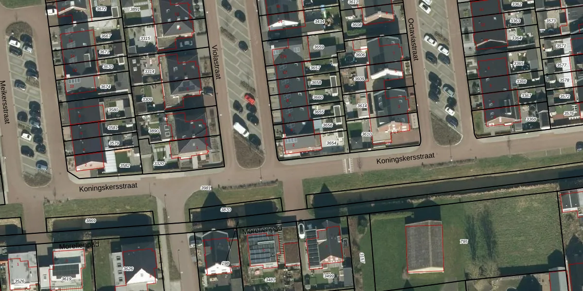 Violastraat 2 is gelegen op kadastraal perceel MDL01N3654. Deze kadastrale aanduiding is uniek en wordt gebruikt door het Kadaster om eigendomsrechten en andere zakelijke rechten vast te leggen. Het perceel maakt onderdeel uit van de kadastrale gemeente Maasdriel.