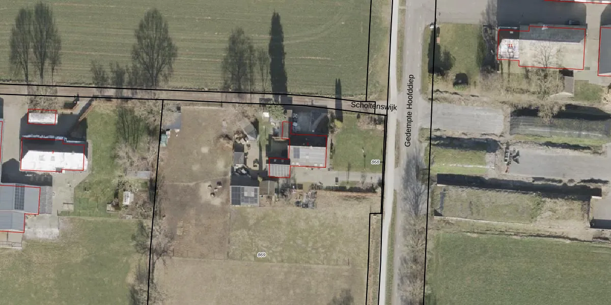 Scholtenswijk 1 is gelegen op kadastraal perceel ZWD02L869. Deze kadastrale aanduiding is uniek en wordt gebruikt door het Kadaster om eigendomsrechten en andere zakelijke rechten vast te leggen. Het perceel maakt onderdeel uit van de kadastrale gemeente Zuidwolde.