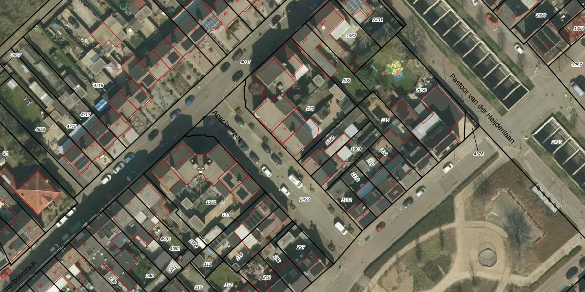 Acaciastraat 7 is gelegen op kadastraal perceel KRD00G173. Deze kadastrale aanduiding is uniek en wordt gebruikt door het Kadaster om eigendomsrechten en andere zakelijke rechten vast te leggen. Het perceel maakt onderdeel uit van de kadastrale gemeente Kerkrade.