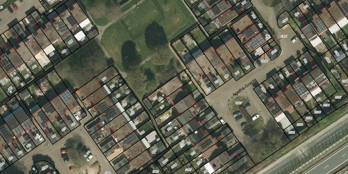 Het perceel waarop Agatha-Gracht 21 staat heeft een oppervlakte van 195 m². Dit is een middelgroot perceel. De perceeloppervlakte wordt geregistreerd door het Kadaster. Gedetailleerde informatie over de maten van dit perceel kunt u vinden in het rapport Kadastrale kaart met maatvoering van Agatha-Gracht 21.