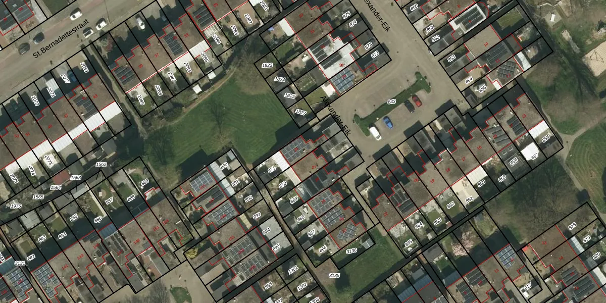 Alexander-Eik 28 is gelegen op kadastraal perceel KRD00K871. Deze kadastrale aanduiding is uniek en wordt gebruikt door het Kadaster om eigendomsrechten en andere zakelijke rechten vast te leggen. Het perceel maakt onderdeel uit van de kadastrale gemeente Kerkrade.