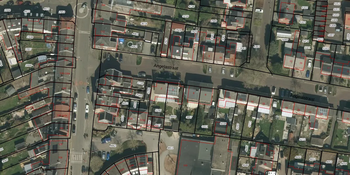 Angelastraat 4 is gelegen op kadastraal perceel KRD00F4859. Deze kadastrale aanduiding is uniek en wordt gebruikt door het Kadaster om eigendomsrechten en andere zakelijke rechten vast te leggen. Het perceel maakt onderdeel uit van de kadastrale gemeente Kerkrade.