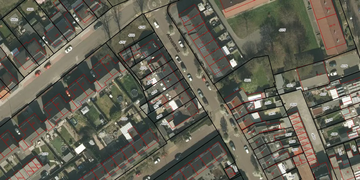 Annastraat 41 is gelegen op kadastraal perceel KRD00E4227. Deze kadastrale aanduiding is uniek en wordt gebruikt door het Kadaster om eigendomsrechten en andere zakelijke rechten vast te leggen. Het perceel maakt onderdeel uit van de kadastrale gemeente Kerkrade.