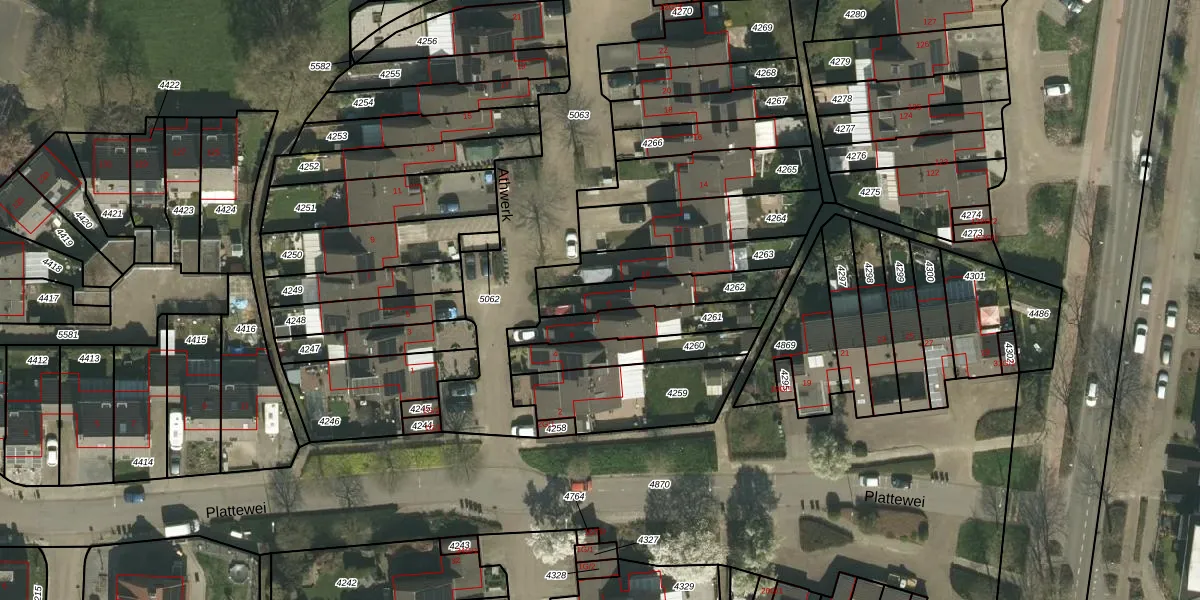 Het perceel waarop het adres ligt is KRD00-F-4262. De afkorting 'KRD00' staat voor kadastrale gemeente Kerkrade. De gemiddelde perceelgrootte in Kerkrade is 1061,22 m². Dit perceel is kleiner: de perceeloppervlakte bedraagt 205 m². Het grootste perceel in de kadastrale gemeente is 63,5 ha. Het kleinste perceel heeft een oppervlakte van 0 m². Er zijn geen andere adressen aanwezig op het perceel. In de Basisregistratie Kadaster (BRK) werden de grenzen van het perceel geregistreerd op 22-11-2007.