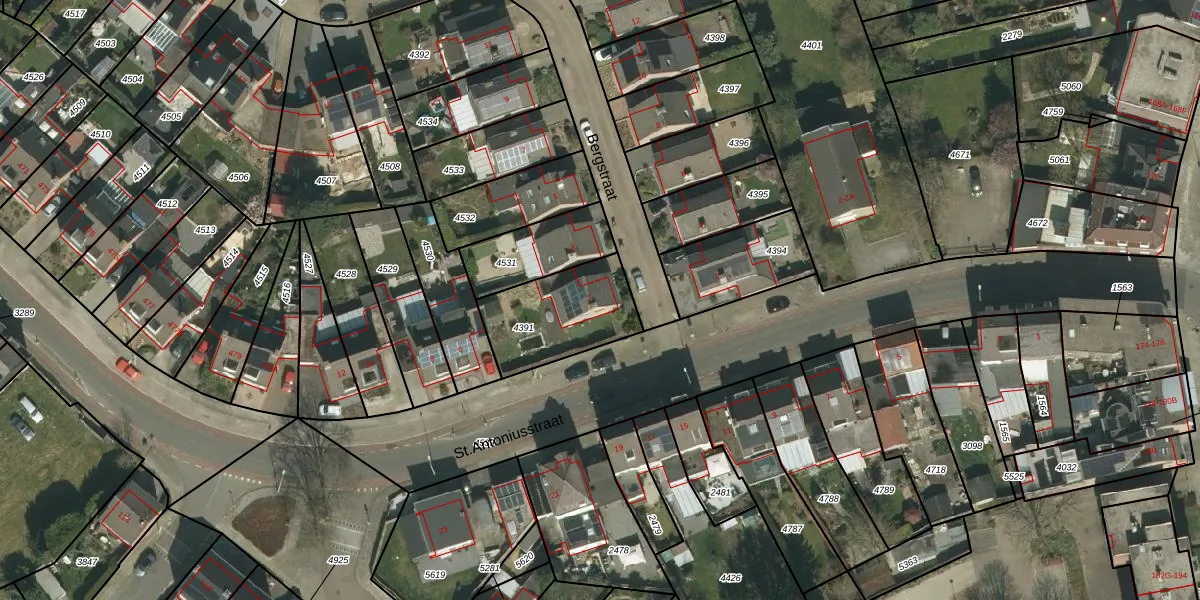 Bergstraat 1 is gelegen op kadastraal perceel KRD00F4391. Deze kadastrale aanduiding is uniek en wordt gebruikt door het Kadaster om eigendomsrechten en andere zakelijke rechten vast te leggen. Het perceel maakt onderdeel uit van de kadastrale gemeente Kerkrade.
