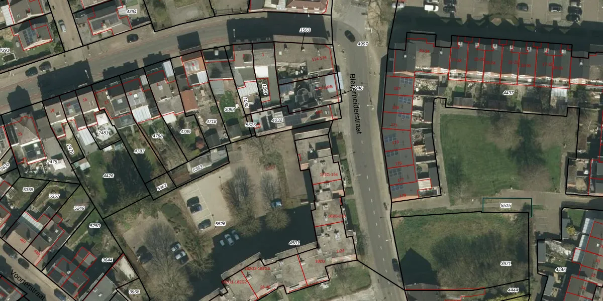 Het perceel waarop Bleijerheiderstraat 182-G-14 staat heeft een oppervlakte van 1115 m². Dit is een zeer groot perceel. De perceeloppervlakte wordt geregistreerd door het Kadaster. Gedetailleerde informatie over de maten van dit perceel kunt u vinden in het rapport Kadastrale kaart met maatvoering van Bleijerheiderstraat 182-G-14.