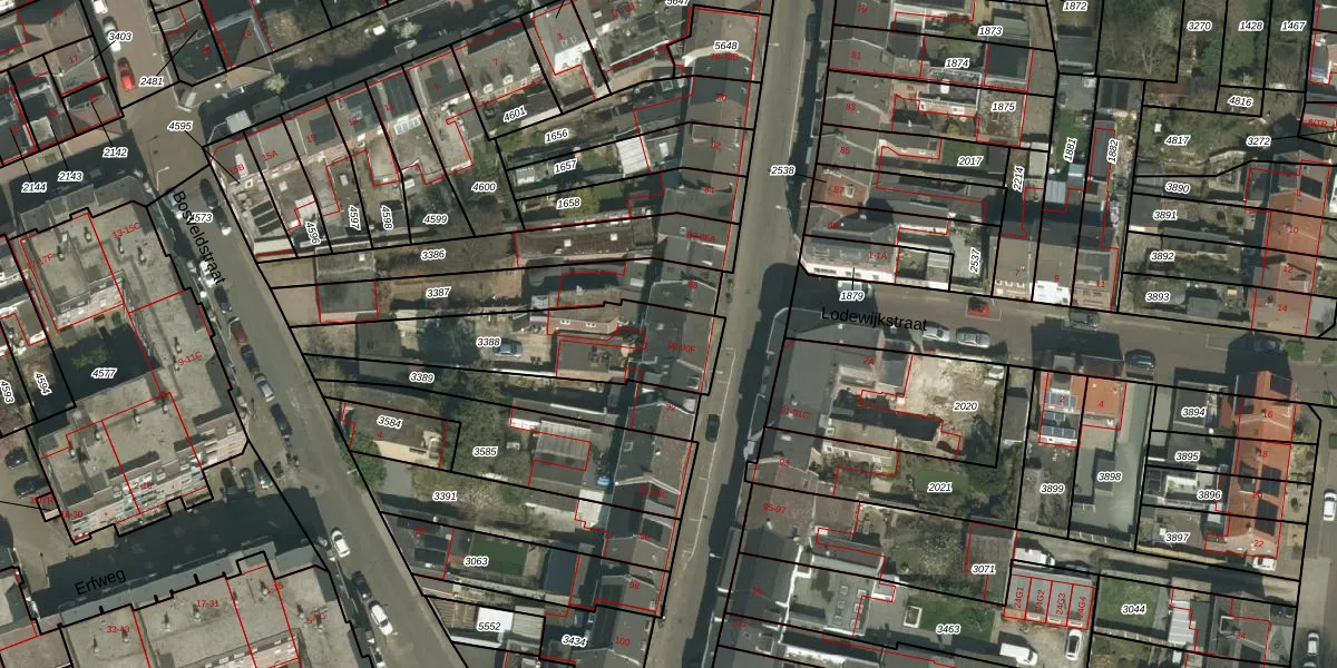 Het perceel waarop Bleijerheiderstraat 90-B staat heeft een oppervlakte van 592 m². Dit is een groot perceel. De perceeloppervlakte wordt geregistreerd door het Kadaster. Gedetailleerde informatie over de maten van dit perceel kunt u vinden in het rapport Kadastrale kaart met maatvoering van Bleijerheiderstraat 90-B.