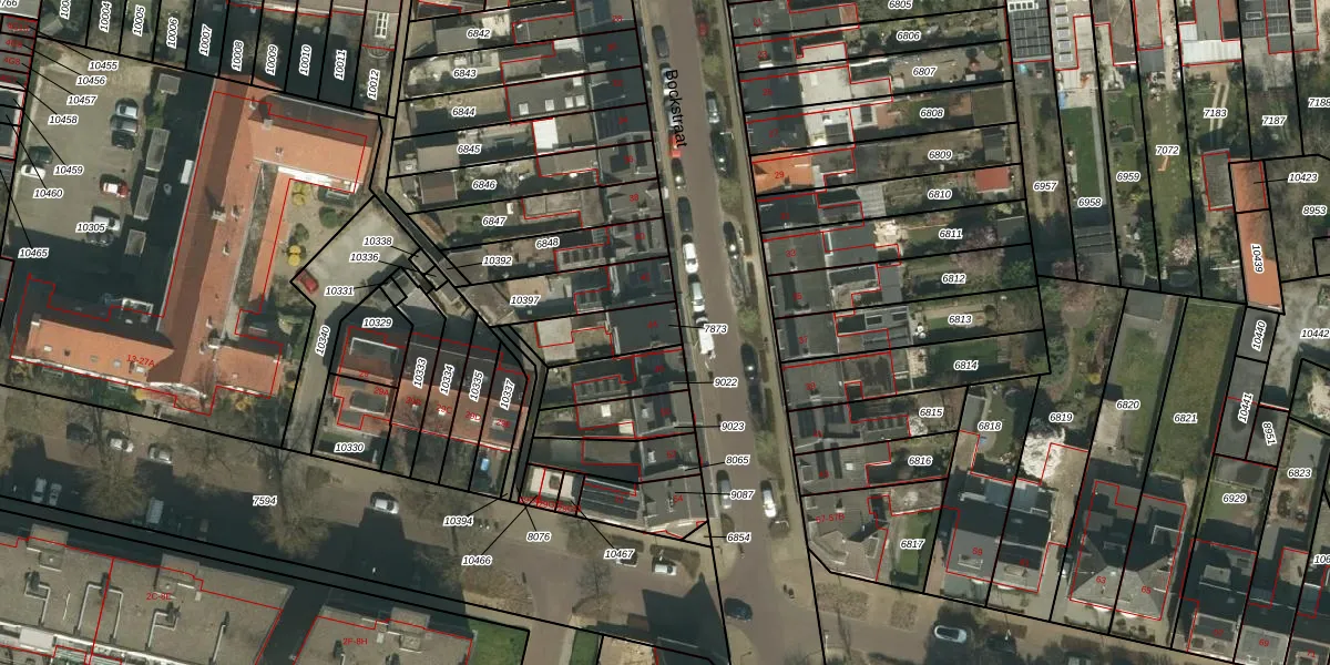 Bockstraat 44 is gelegen op kadastraal perceel KRD00B7873. Deze kadastrale aanduiding is uniek en wordt gebruikt door het Kadaster om eigendomsrechten en andere zakelijke rechten vast te leggen. Het perceel maakt onderdeel uit van de kadastrale gemeente Kerkrade.