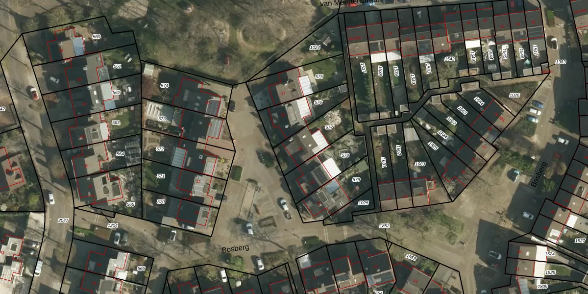 Het perceel waarop Bosberg 29 staat heeft een oppervlakte van 303 m². Dit is een groot perceel. De perceeloppervlakte wordt geregistreerd door het Kadaster. Gedetailleerde informatie over de maten van dit perceel kunt u vinden in het rapport Kadastrale kaart met maatvoering van Bosberg 29.