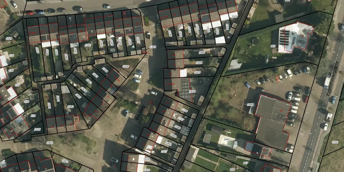 Het perceel waarop Bosberg 43 staat heeft een oppervlakte van 319 m². Dit is een groot perceel. De perceeloppervlakte wordt geregistreerd door het Kadaster. Gedetailleerde informatie over de maten van dit perceel kunt u vinden in het rapport Kadastrale kaart met maatvoering van Bosberg 43.