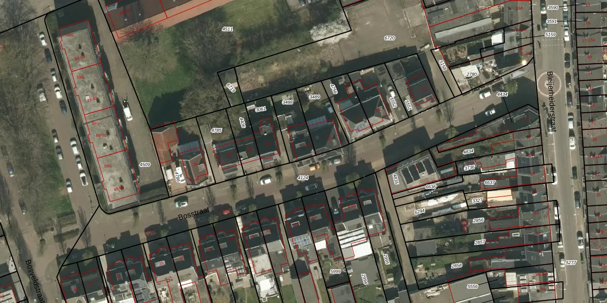 Bosstraat 18 is gelegen op kadastraal perceel KRD00E3488. Deze kadastrale aanduiding is uniek en wordt gebruikt door het Kadaster om eigendomsrechten en andere zakelijke rechten vast te leggen. Het perceel maakt onderdeel uit van de kadastrale gemeente Kerkrade.