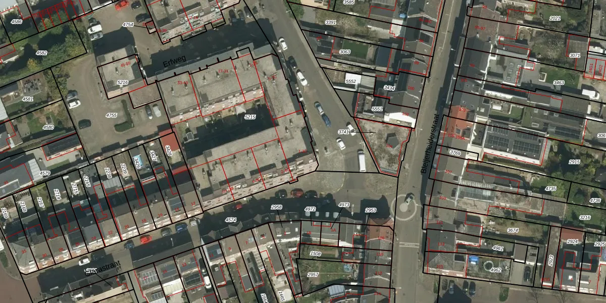 Bosveldstraat 1-B is gelegen op kadastraal perceel KRD00F5215. Deze kadastrale aanduiding is uniek en wordt gebruikt door het Kadaster om eigendomsrechten en andere zakelijke rechten vast te leggen. Het perceel maakt onderdeel uit van de kadastrale gemeente Kerkrade.
