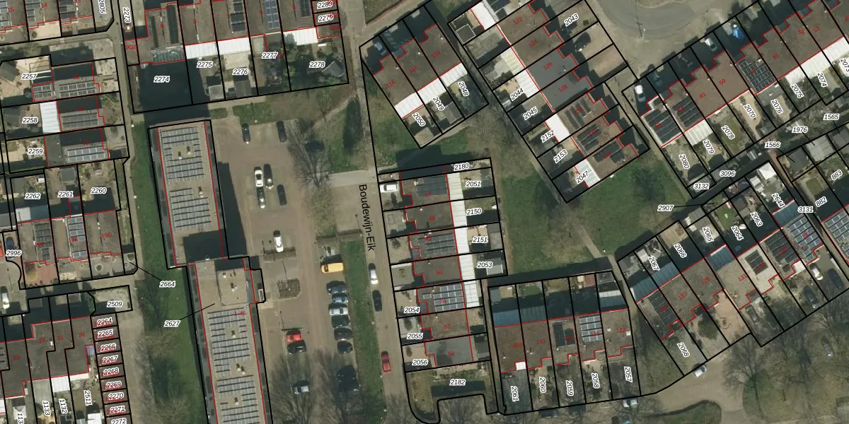 Boudewijn-Eik 48 is gelegen op kadastraal perceel KRD00K2150. Deze kadastrale aanduiding is uniek en wordt gebruikt door het Kadaster om eigendomsrechten en andere zakelijke rechten vast te leggen. Het perceel maakt onderdeel uit van de kadastrale gemeente Kerkrade.
