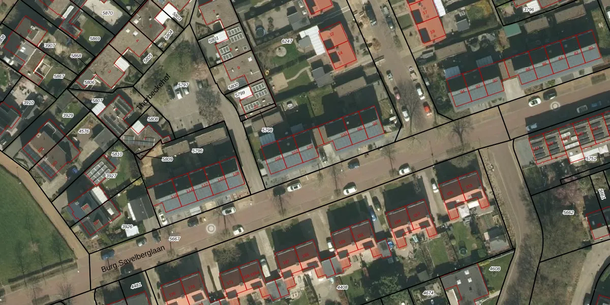 Het perceel waarop Burg.Savelberglaan 102 staat heeft een oppervlakte van 3426 m². Dit is een zeer groot perceel. De perceeloppervlakte wordt geregistreerd door het Kadaster. Gedetailleerde informatie over de maten van dit perceel kunt u vinden in het rapport Kadastrale kaart met maatvoering van Burg.Savelberglaan 102.