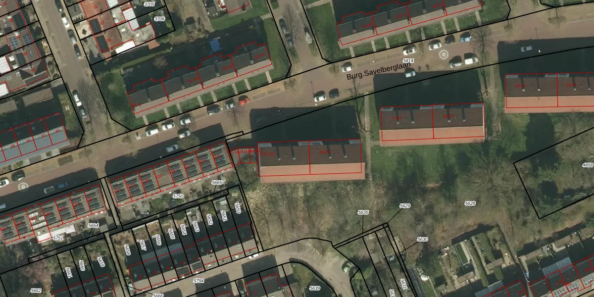 Burg.Savelberglaan 103 is gelegen op kadastraal perceel KRD00E5628. Deze kadastrale aanduiding is uniek en wordt gebruikt door het Kadaster om eigendomsrechten en andere zakelijke rechten vast te leggen. Het perceel maakt onderdeel uit van de kadastrale gemeente Kerkrade.