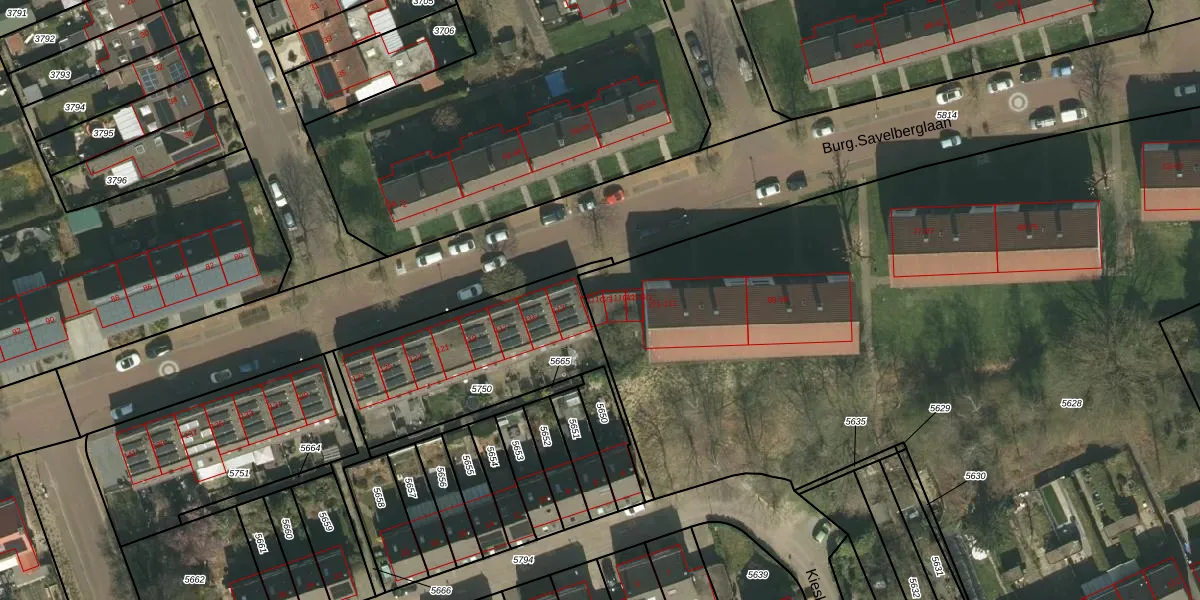 Burg.Savelberglaan 111-G-3 is gelegen op kadastraal perceel KRD00E5628. Deze kadastrale aanduiding is uniek en wordt gebruikt door het Kadaster om eigendomsrechten en andere zakelijke rechten vast te leggen. Het perceel maakt onderdeel uit van de kadastrale gemeente Kerkrade.