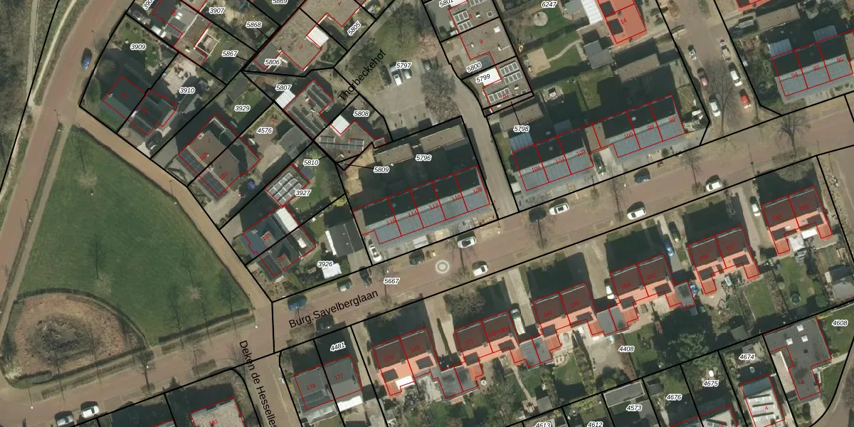 Burg.Savelberglaan 112 is gelegen op kadastraal perceel KRD00E5796. Deze kadastrale aanduiding is uniek en wordt gebruikt door het Kadaster om eigendomsrechten en andere zakelijke rechten vast te leggen. Het perceel maakt onderdeel uit van de kadastrale gemeente Kerkrade.