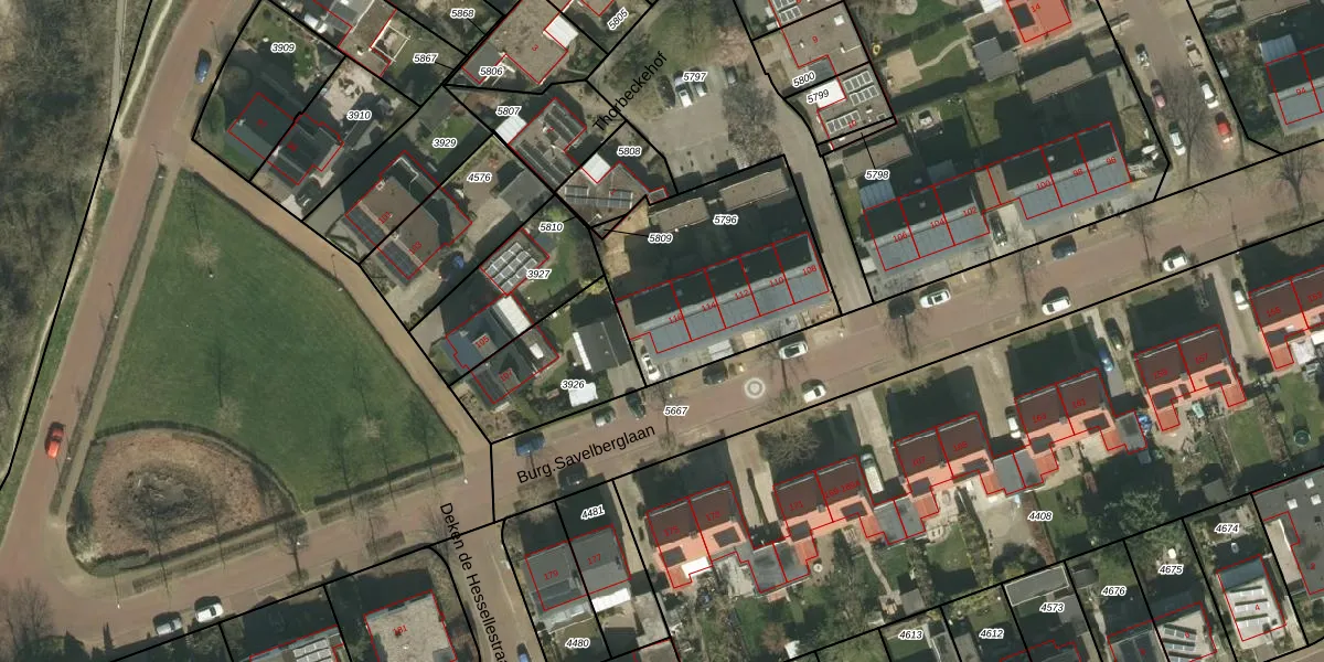 Het perceel waarop Burg.Savelberglaan 116 staat heeft een oppervlakte van 800 m². Dit is een groot perceel. De perceeloppervlakte wordt geregistreerd door het Kadaster. Gedetailleerde informatie over de maten van dit perceel kunt u vinden in het rapport Kadastrale kaart met maatvoering van Burg.Savelberglaan 116.