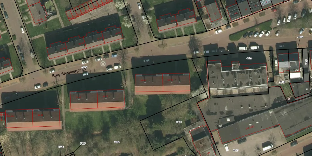 Burg.Savelberglaan 55 is gelegen op kadastraal perceel KRD00E5628. Deze kadastrale aanduiding is uniek en wordt gebruikt door het Kadaster om eigendomsrechten en andere zakelijke rechten vast te leggen. Het perceel maakt onderdeel uit van de kadastrale gemeente Kerkrade.