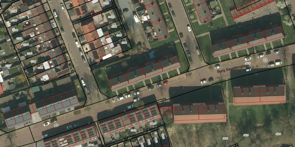 Het perceel waarop Burg.Savelberglaan 60 staat heeft een oppervlakte van 6450 m². Dit is een zeer groot perceel. De perceeloppervlakte wordt geregistreerd door het Kadaster. Gedetailleerde informatie over de maten van dit perceel kunt u vinden in het rapport Kadastrale kaart met maatvoering van Burg.Savelberglaan 60.