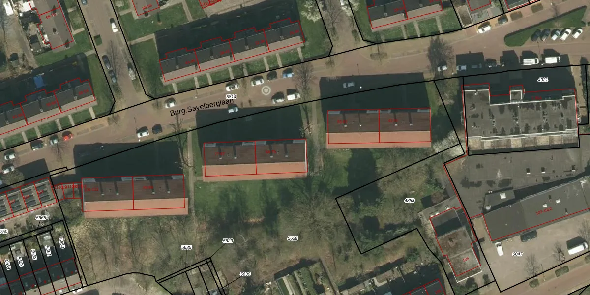 Burg.Savelberglaan 75 is gelegen op kadastraal perceel KRD00E5628. Deze kadastrale aanduiding is uniek en wordt gebruikt door het Kadaster om eigendomsrechten en andere zakelijke rechten vast te leggen. Het perceel maakt onderdeel uit van de kadastrale gemeente Kerkrade.