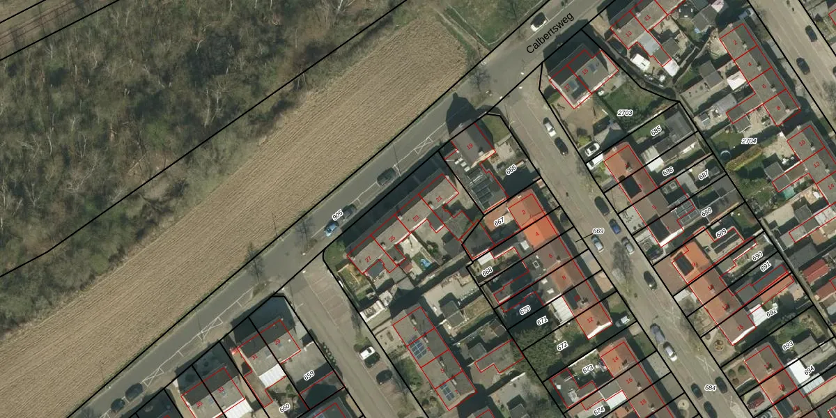 Calbertsweg 23 is gelegen op kadastraal perceel KRD00K2576. Deze kadastrale aanduiding is uniek en wordt gebruikt door het Kadaster om eigendomsrechten en andere zakelijke rechten vast te leggen. Het perceel maakt onderdeel uit van de kadastrale gemeente Kerkrade.