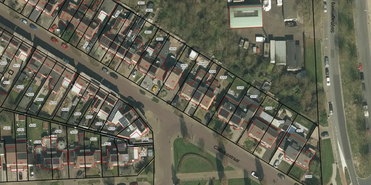Het perceel waarop Callistusstraat 93 staat heeft een oppervlakte van 262 m². Dit is een middelgroot perceel. De perceeloppervlakte wordt geregistreerd door het Kadaster. Gedetailleerde informatie over de maten van dit perceel kunt u vinden in het rapport Kadastrale kaart met maatvoering van Callistusstraat 93.