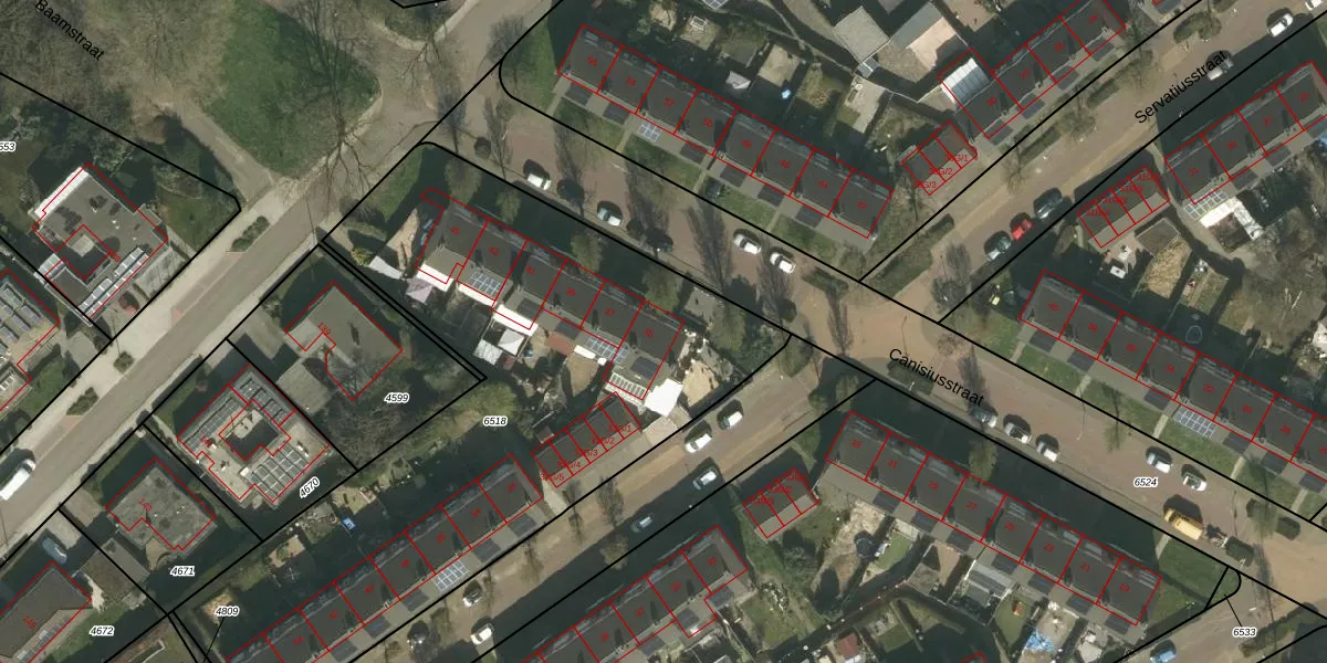 Canisiusstraat 35 is gelegen op kadastraal perceel KRD00E6518. Deze kadastrale aanduiding is uniek en wordt gebruikt door het Kadaster om eigendomsrechten en andere zakelijke rechten vast te leggen. Het perceel maakt onderdeel uit van de kadastrale gemeente Kerkrade.