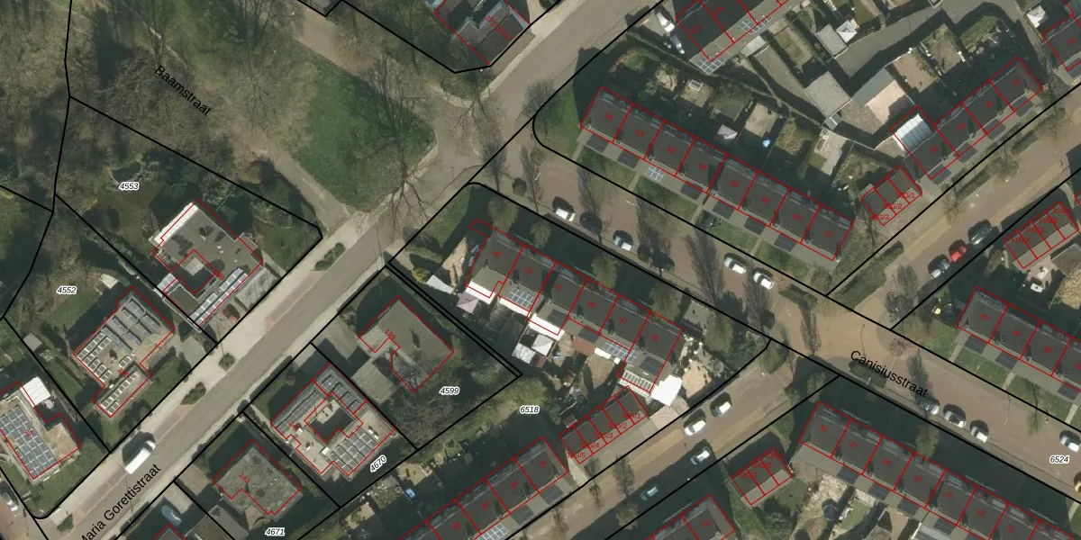 Canisiusstraat 43 is gelegen op kadastraal perceel KRD00E6518. Deze kadastrale aanduiding is uniek en wordt gebruikt door het Kadaster om eigendomsrechten en andere zakelijke rechten vast te leggen. Het perceel maakt onderdeel uit van de kadastrale gemeente Kerkrade.