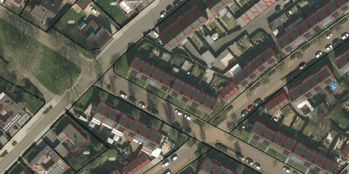 Het perceel waarop Canisiusstraat 48 staat heeft een oppervlakte van 9547 m². Dit is een zeer groot perceel. De perceeloppervlakte wordt geregistreerd door het Kadaster. Gedetailleerde informatie over de maten van dit perceel kunt u vinden in het rapport Kadastrale kaart met maatvoering van Canisiusstraat 48.