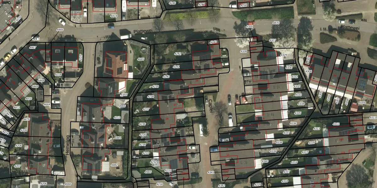 Caplei 28 is gelegen op kadastraal perceel KRD00F4238. Deze kadastrale aanduiding is uniek en wordt gebruikt door het Kadaster om eigendomsrechten en andere zakelijke rechten vast te leggen. Het perceel maakt onderdeel uit van de kadastrale gemeente Kerkrade.