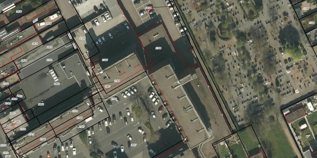Carboonplein 18-B is gelegen op kadastraal perceel KRD00H2704. Deze kadastrale aanduiding is uniek en wordt gebruikt door het Kadaster om eigendomsrechten en andere zakelijke rechten vast te leggen. Het perceel maakt onderdeel uit van de kadastrale gemeente Kerkrade.