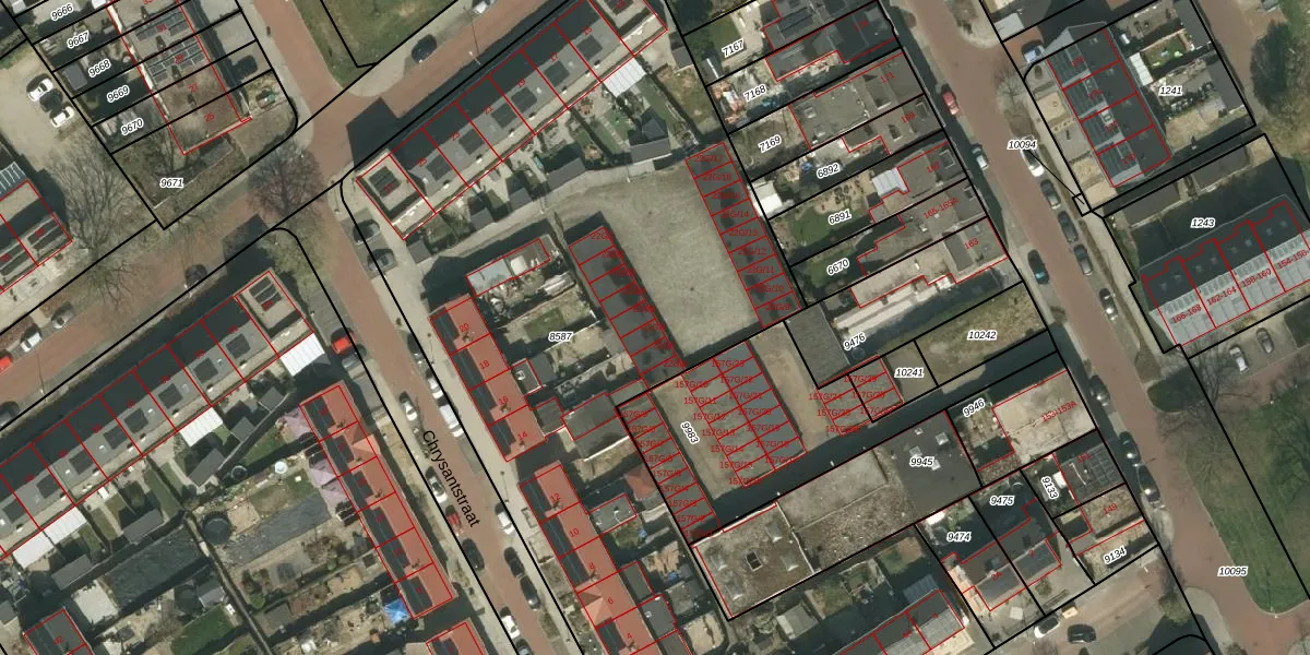 Het perceel waarop Chrysantstraat 22-G-6 staat heeft een oppervlakte van 5272 m². Dit is een zeer groot perceel. De perceeloppervlakte wordt geregistreerd door het Kadaster. Gedetailleerde informatie over de maten van dit perceel kunt u vinden in het rapport Kadastrale kaart met maatvoering van Chrysantstraat 22-G-6.
