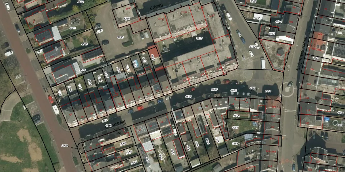 Het perceel waarop het adres ligt is KRD00-F-5215. De afkorting 'KRD00' staat voor kadastrale gemeente Kerkrade. De gemiddelde perceeloppervlakte in de kadastrale gemeente Kerkrade is 1061,22 m². Dit perceel is met zijn 1830 m² dus groter dan gemiddeld. De grootste perceeloppervlakte in de kadastrale gemeente is 63,5 ha. De kleinste oppervlakte bedraagt 0 m². Op het perceel zijn 61 adressen aanwezig. De huidige grenzen van het perceel zijn digitaal in de Basisregistratie Kadaster (BRK) geregistreerd op 20-11-2007.
