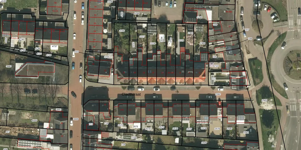 Clausstraat 14 is gelegen op kadastraal perceel KRD00G2228. Deze kadastrale aanduiding is uniek en wordt gebruikt door het Kadaster om eigendomsrechten en andere zakelijke rechten vast te leggen. Het perceel maakt onderdeel uit van de kadastrale gemeente Kerkrade.