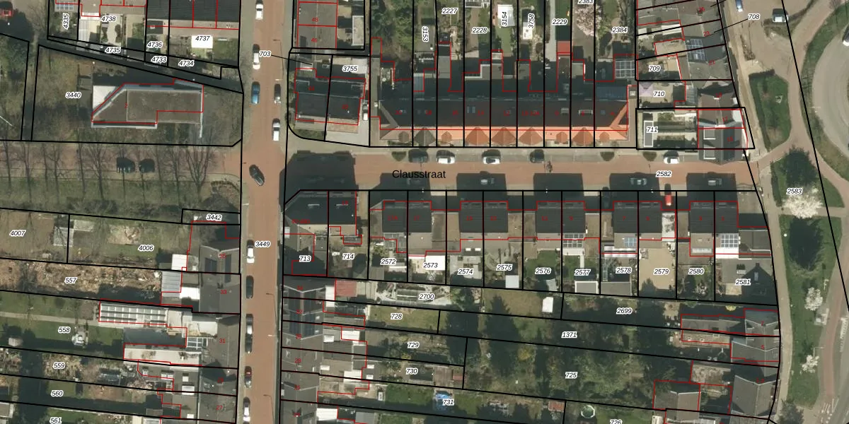Het perceel waarop Clausstraat 17 staat heeft een oppervlakte van 199 m². Dit is een middelgroot perceel. De perceeloppervlakte wordt geregistreerd door het Kadaster. Gedetailleerde informatie over de maten van dit perceel kunt u vinden in het rapport Kadastrale kaart met maatvoering van Clausstraat 17.