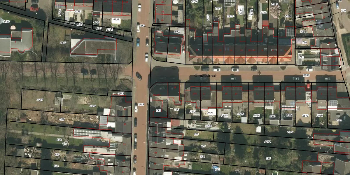 Het perceel waarop Clausstraat 19 staat heeft een oppervlakte van 197 m². Dit is een middelgroot perceel. De perceeloppervlakte wordt geregistreerd door het Kadaster. Gedetailleerde informatie over de maten van dit perceel kunt u vinden in het rapport Kadastrale kaart met maatvoering van Clausstraat 19.