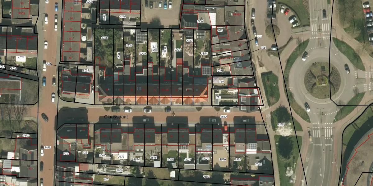 Clausstraat 6 is gelegen op kadastraal perceel KRD00G2383. Deze kadastrale aanduiding is uniek en wordt gebruikt door het Kadaster om eigendomsrechten en andere zakelijke rechten vast te leggen. Het perceel maakt onderdeel uit van de kadastrale gemeente Kerkrade.