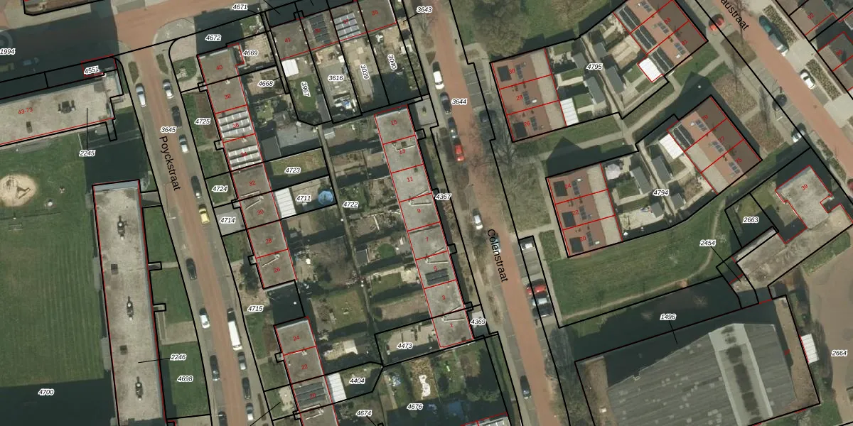 Het perceel waarop Colenstraat 9 staat heeft een oppervlakte van 2330 m². Dit is een zeer groot perceel. De perceeloppervlakte wordt geregistreerd door het Kadaster. Gedetailleerde informatie over de maten van dit perceel kunt u vinden in het rapport Kadastrale kaart met maatvoering van Colenstraat 9.