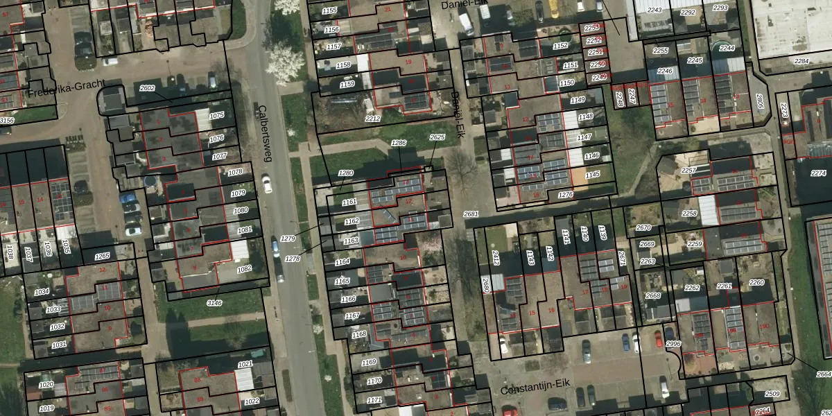 Constantijn-Eik 12 is gelegen op kadastraal perceel KRD00K1162. Deze kadastrale aanduiding is uniek en wordt gebruikt door het Kadaster om eigendomsrechten en andere zakelijke rechten vast te leggen. Het perceel maakt onderdeel uit van de kadastrale gemeente Kerkrade.
